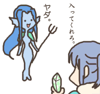 いや、まぁ、コンパとスキーで区切るんじゃなくってコンパスとキーで区切るんだとは思いますけど。どうでもイイ妄想はさておき、レイスは人が進むべき道を示すそのコンパスキーに従って動いているんだとか。道具任せの運命なんてどうかと思いますが、まぁ、そこは個人の自由でしょう。キャンプが終ったらさらに先へ、途中で落とし穴にハマってまた入り口に戻されたりしながらも、やっとの事で大晶霊のいる最深部へと到達します。大声で呼びかけると風の大晶霊シルフが登場し、またウンディーネの時のように力を示す戦闘に突入しました。空を飛んでるので打ち落とすのがチョイと手間でしたが、前の時と違って全ての技を妨害可能なおかげで取り巻きのザコを消した後は一方的な攻撃で勝利。…って、限りなくいじめに近い気がするのは私だけですか? ガキみたいな性格のシルフをレイスが下手に出て説得したら帰還を開始します。 んで帰り道、入り口の所で番兵から何やら耳打ちされたレイスは商談(ツボ)のために一行から離脱してしまいました。ちなみに、去り際にはかつてキールがそうしたように装備を脱いで行ってくれました(彼の装備は変更も追加も一切してないのに)。